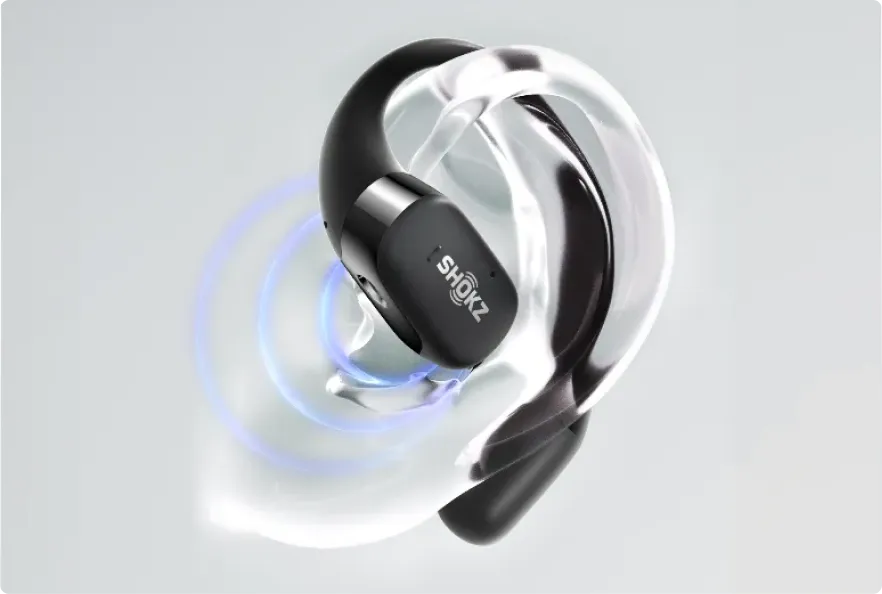 Die Open-Ear-Audiotechnologie von Shokz basiert auf der Schallübertragung durch die Luft und verbessert die akustische Wiedergabe. Der Hauptfokus liegt auf der Reduzierung von Schallverlusten und der Verbesserung der Klangqualität unserer Open-Ear-Ohrhörer.