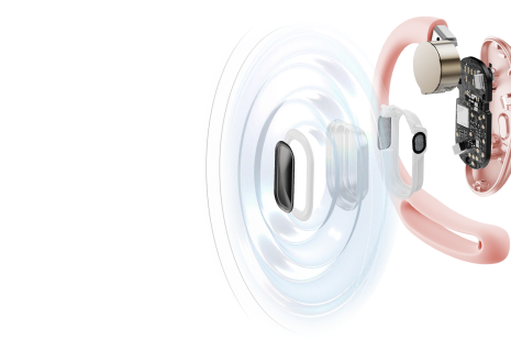 Der OpenFit Air ist sorgfältig verarbeitet und strahlt Vitalität sowie Eleganz aus. Die matte Silikonoberfläche in Kombination mit einem metallischen, silberfarbenen Ring erzeugt einen atemberaubenden visuellen Effekt, der die Schönheit der Technik zum Ausdruck bringt. Wählen Sie aus drei fantastischen Farben, passend zu Ihrem Stil – von auffällig bis minimalistisch.