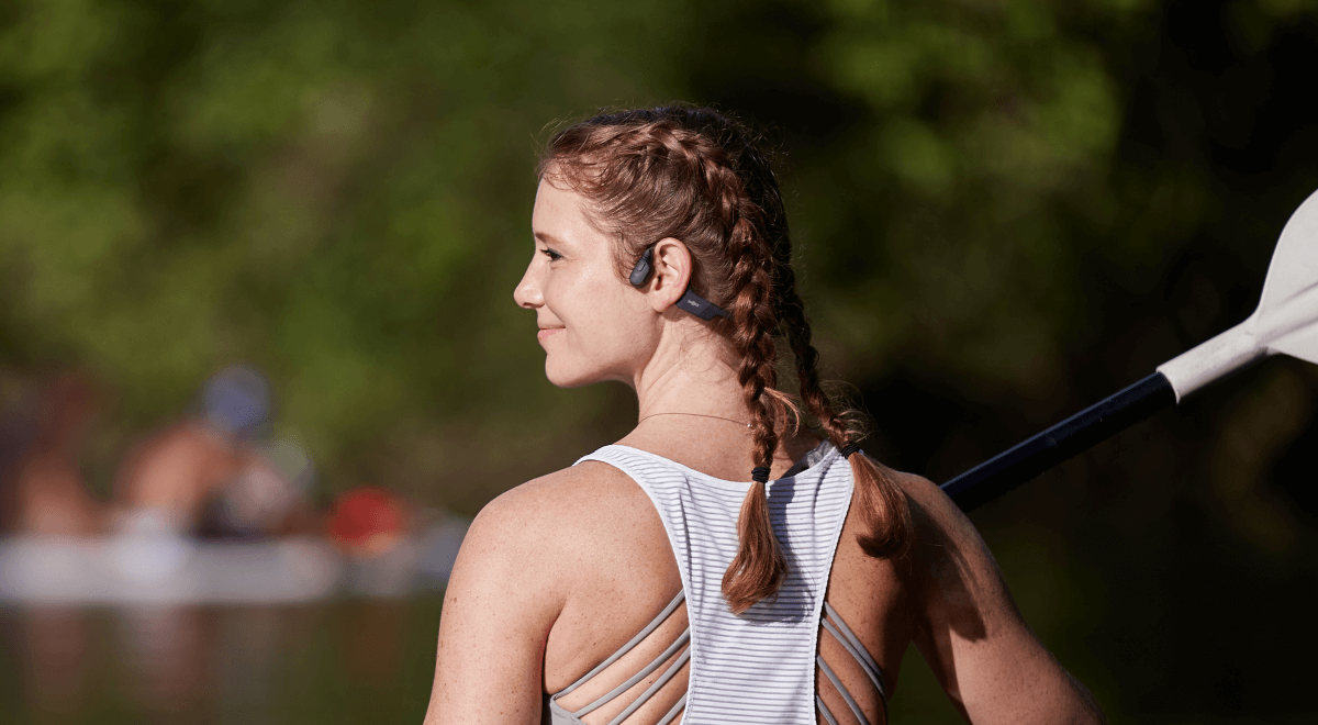 Mit ihrer stöpselfreien Hörerfahrung, ihrer Silikon-Ummantelung und dem federleichten Design, ermöglichen die Kopfhörer OpenRun (Schnellladeversion von Aeropex) einen angenehmen Tragekomfort den ganzen Tag lang.